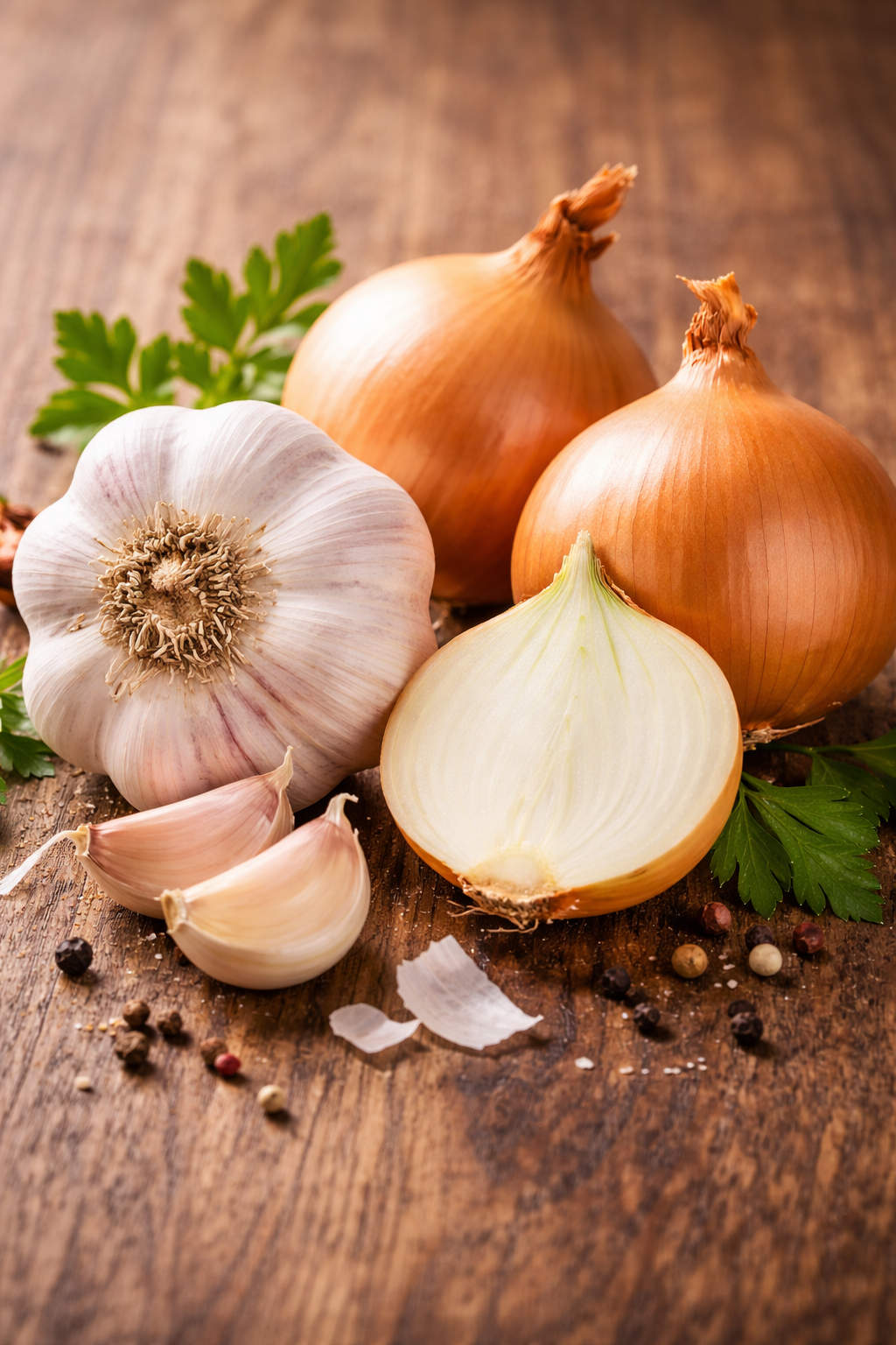 Tma je velkým přítelem cibule a česneku. Naše babičky skladovaly česnek zavázaný v “copu” a cibuli tak, že je zavěsily na půdě v silonové punčoše.